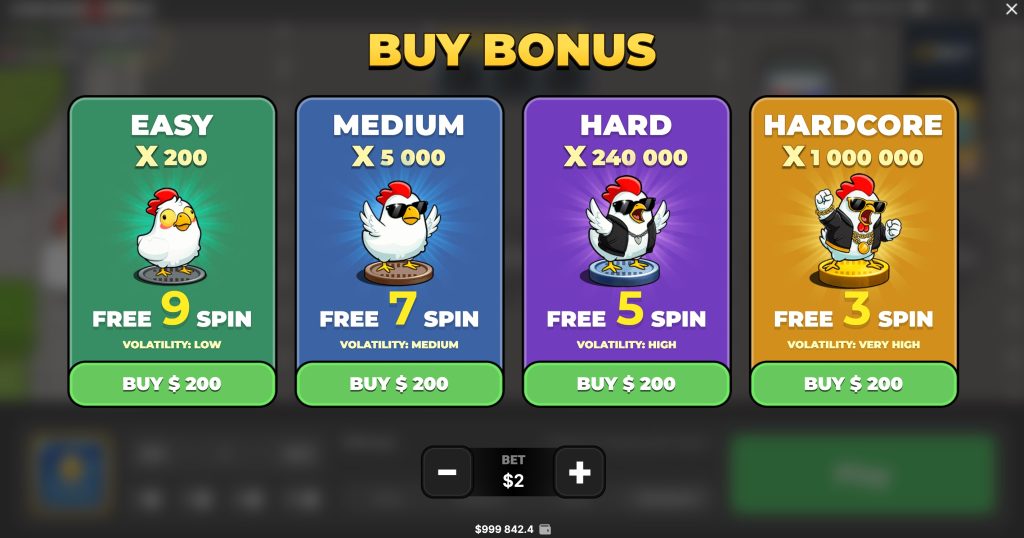 | Hardcore | x1 000 000 | 3 spins | Very High | Extreme Risk |
